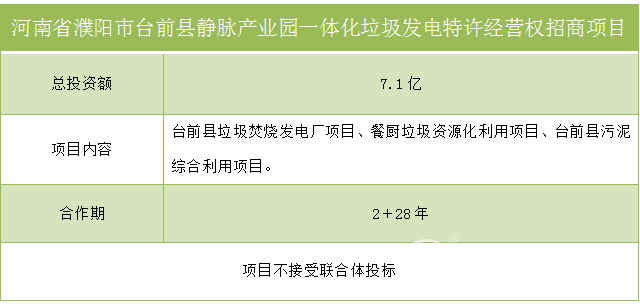 河南省濮阳市台前县静脉产业园一体化垃圾发电特许经营权招商项